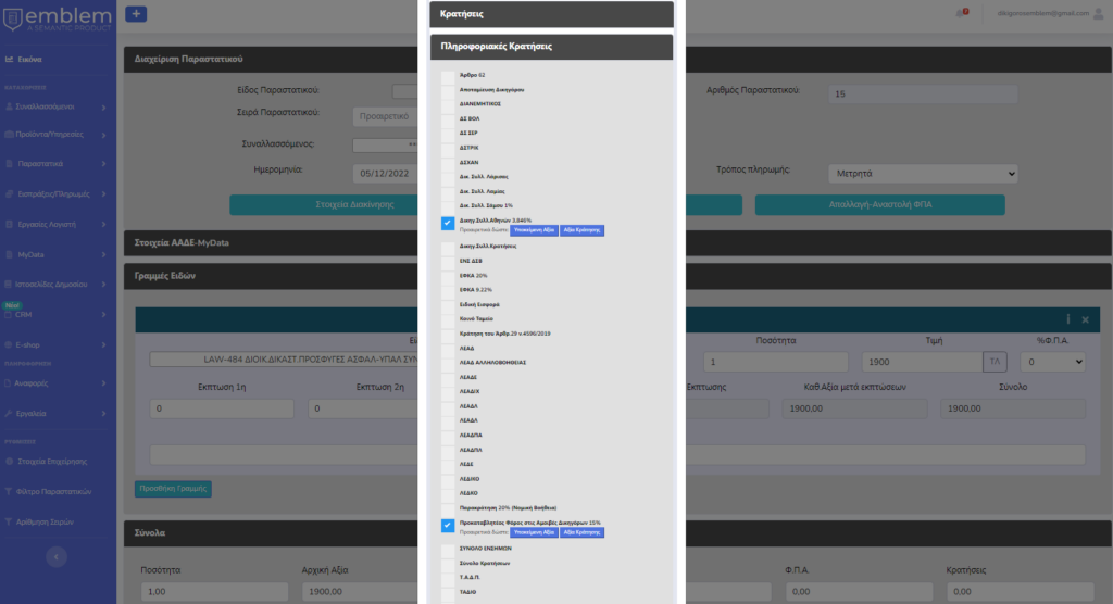 Εύκολη επιλογή και υπολογισμός των απαιτούμενων κρατήσεων.
