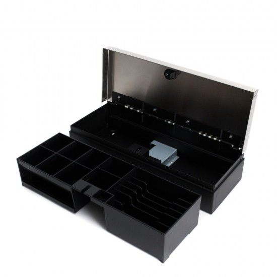 Το ICS Flip Top 4617 είναι ένα ανθεκτικό και αξιόπιστο μεταλλικό συρτάρι POS, σχεδιασμένο για επαγγελματική χρήση. Διαθέτει καπάκι Flip για εύκολη πρόσβαση, 7/8 θέσεις για χαρτονομίσματα και 8 θέσεις για κέρματα, εξασφαλίζοντας βέλτιστη διαχείριση των μετρητών. Η στιβαρή μεταλλική κατασκευή του το καθιστά ιδανικό για έντονη καθημερινή χρήση, ενώ η κλειδαριά 3 θέσεων παρέχει επιπλέον ασφάλεια.